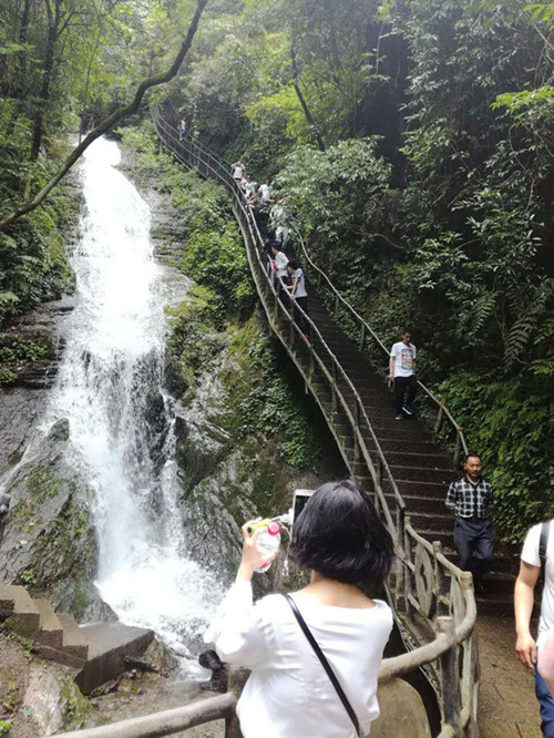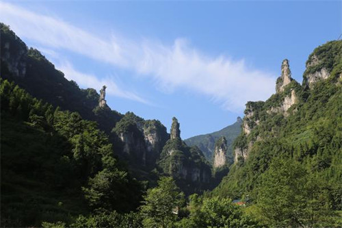 第二天開始游覽素有“湖北的張家界,三峽的九寨溝”之稱的清江方山景區(qū)。世界第一長的八千米絕壁棧道,懸空于方山云海之中,將整個景區(qū)的景觀盡攬眼底。站在高達600多米的懸空棧道之上,隨處可見奇峰怪石。由之俯瞰群山,峰巒疊嶂,千姿百態(tài)。更有落差高達300多米瀑布,一瀉清涼。聽風洞,別有洞天,洞中景致奇異,崖壁上的鐘乳石似百蟒出山、似龍騰虎躍。整個景區(qū)內(nèi)隨處可見山隨水轉,水繞山行,綠樹成蔭。詩句“山之妙在峰回路轉,水之妙在風起波生”在這里體會的淋漓盡致。
